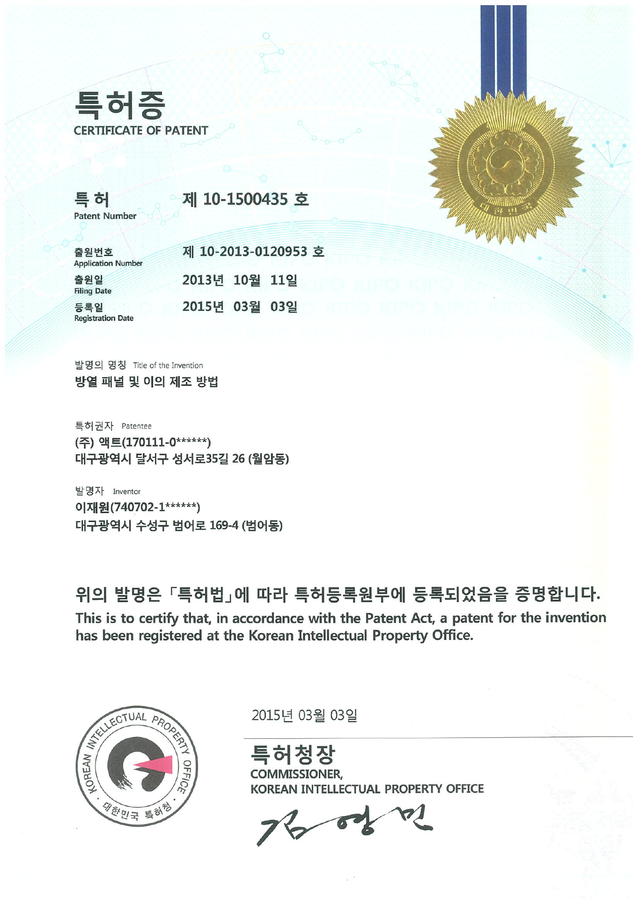 | 10-1500435 | korea | Heat dissipation panel and its manufacturing method |