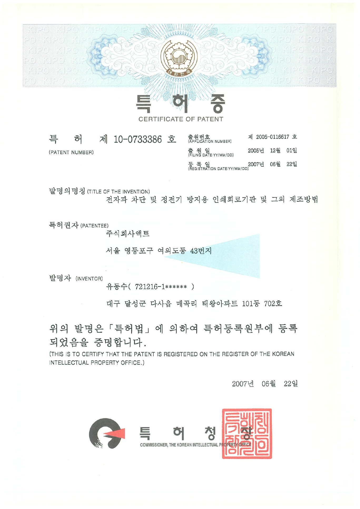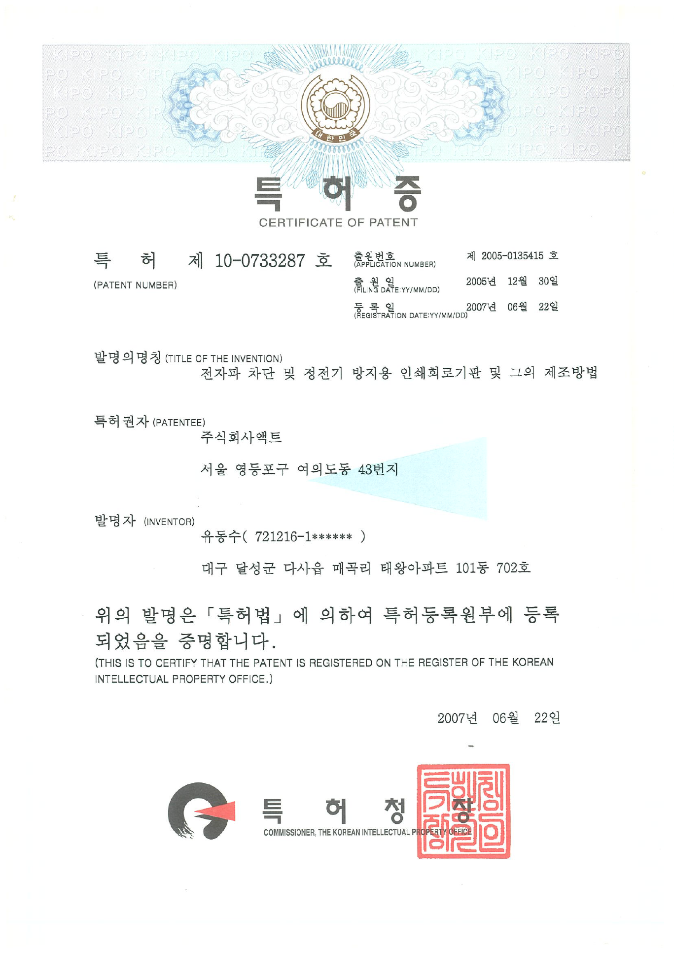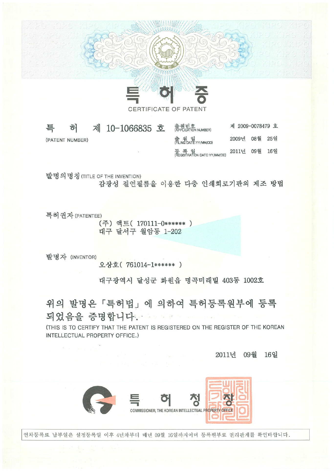 | 10-0551631 | korea | Manufacturing method of multilayer printed circuit board using photosensitive insulating film |